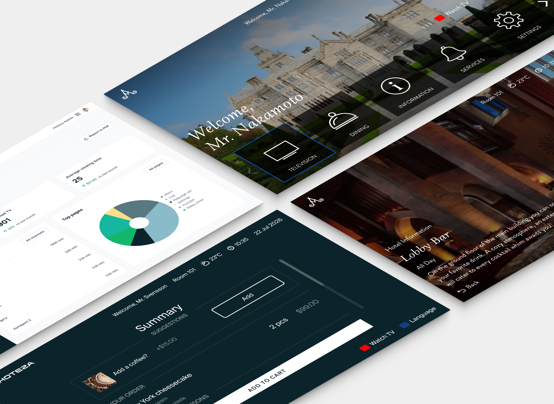 Hoteza TV provides a fully customizable interface that reflects each hotel’s identity: