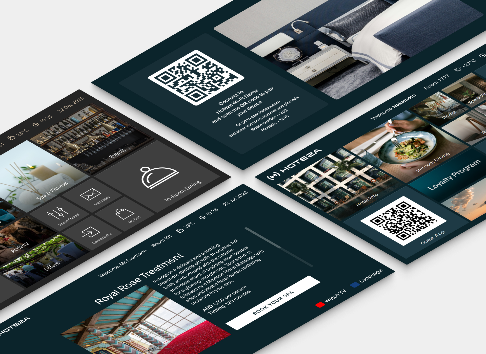 Personalized welcome screens displaying guest names